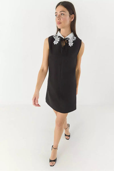 Dantel Yaka Fiyonk Detaylı Mini Elbise